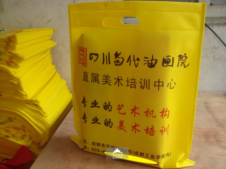 采用 菜黃色優質無紡布材料 一體制作而成,制作成本相對提手袋價格較低。