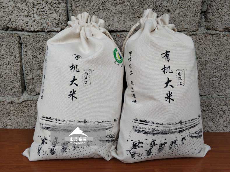 有機(jī)大米袋是采用滌棉材質(zhì)的一種高端大米袋,滌棉帆布袋是有機(jī)農(nóng)業(yè)常用的包裝袋材質(zhì),袋子采用束口收納式。