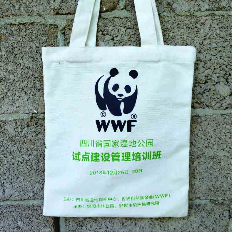 地質公園管理培訓班帆布袋是由成都米尺布袋廠家定制生產,布料采用12安帆布制作,做工精湛,結實耐用;印刷工藝為絲網印刷工藝,顏料采用環保膠漿材質,美觀時尚,在使用的過程中能起到很好的品牌宣傳效果。